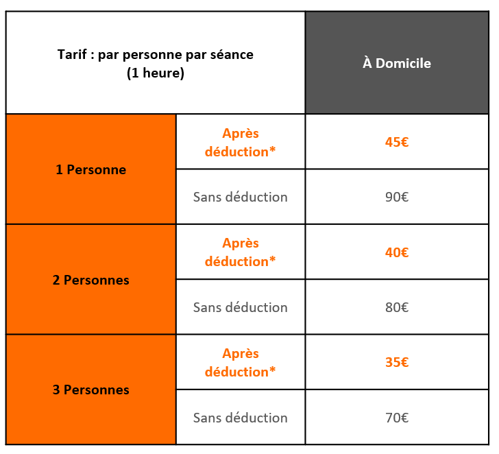 -1 séance de coaching : 45€ après déduction d'impôt, au lieu de 90€*